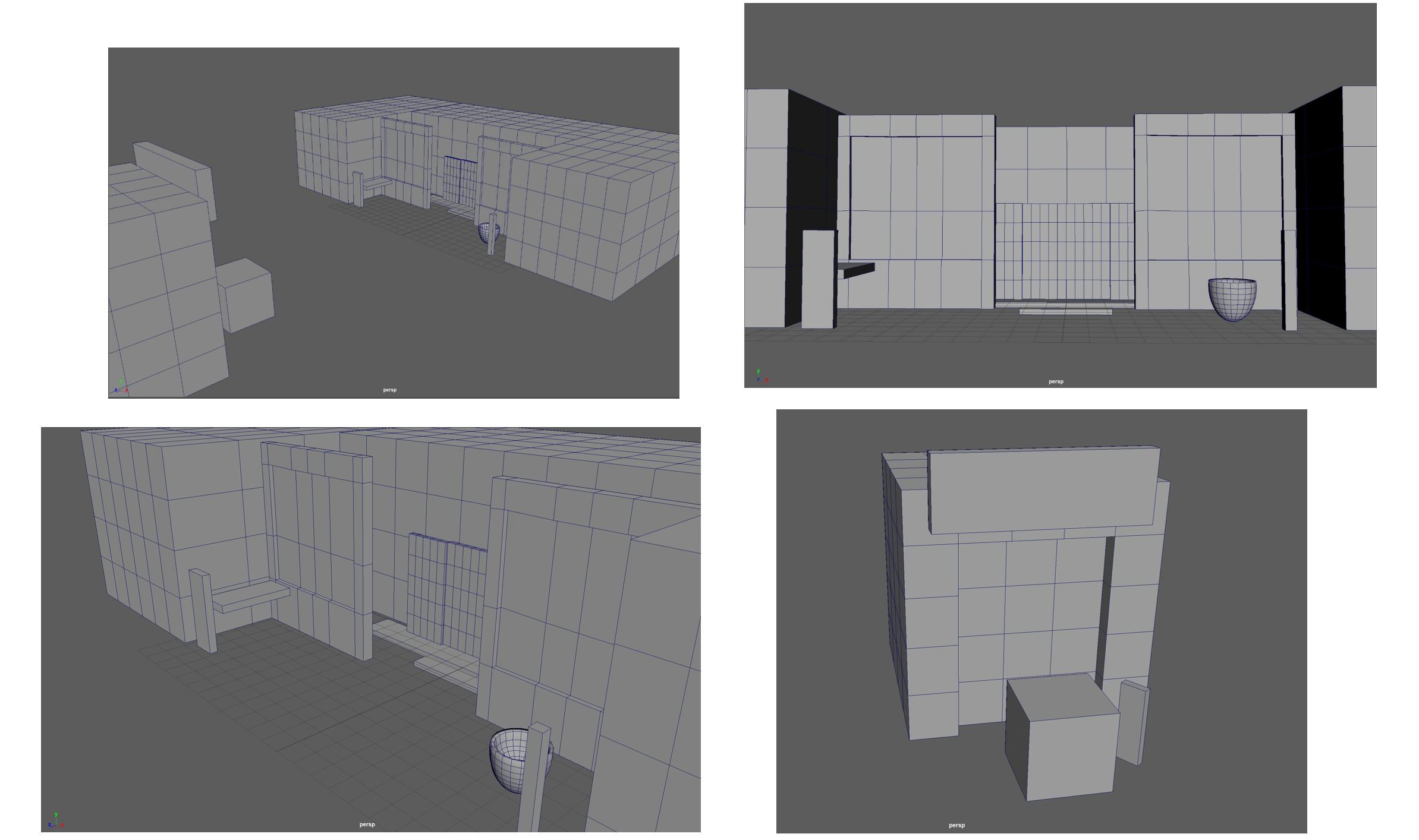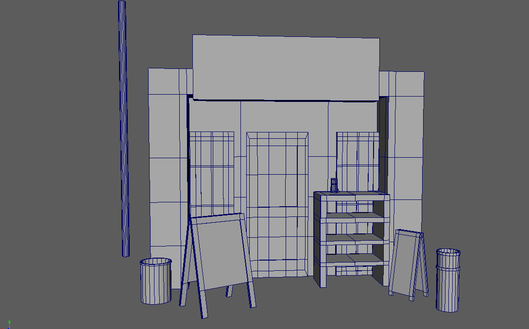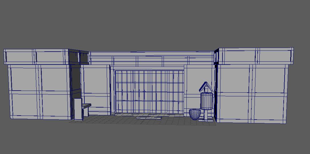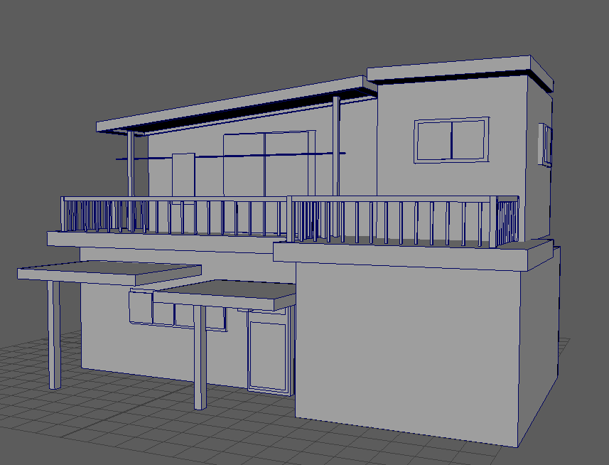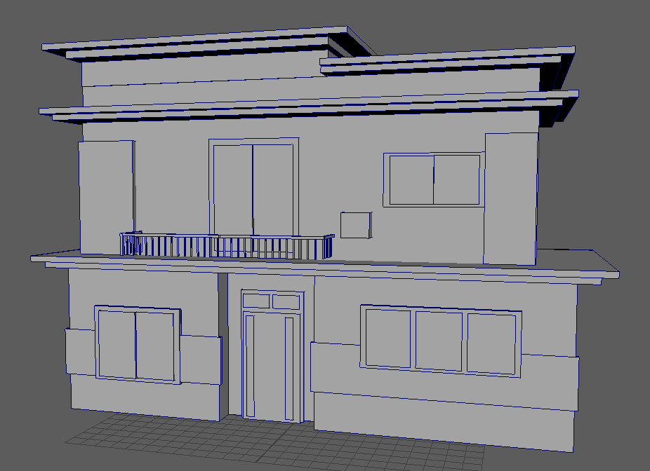 Initial block-out of buildings in Maya